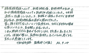 ここまで良くなると思っていませんでした。先生にとても感謝しています。ありがとうございました。